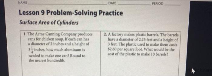 Solved Name Date Period Lesson 9 Problem Solving Practice Chegg Com